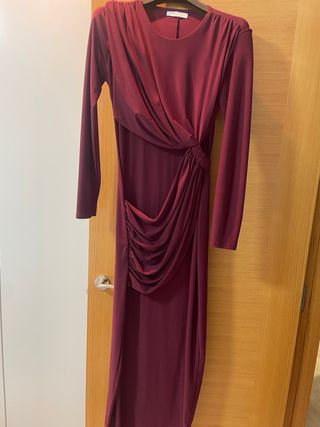 Vestido largo elegante, ideal para eventos. usado solo una vez - Diseño drapeado. - Manga larga. - Corte ceñido.