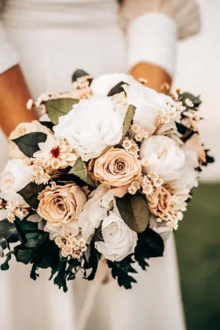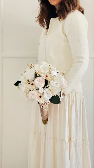 Ramo trabajado con flores preservadas y secas, pensado para mantener el aspecto natural y el movimiento ligero de un ramo fresco. Ideal para bodas románticas, boho o mediterráneas. Diseño artesanal hecho en Valencia Mezcla de texturas y colores suaves Sin cuidados: no necesita agua Se conserva durante años 💐 El precio final depende del acabado, del tamaño y de la personalización que quieras para tu día. 📦 Envío disponible y entrega en mano 💬 Si buscas tonos concretos o quieres ver opciones, escríbeme