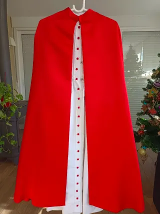 Vesta cofrade para niño, ideal para procesiones. - Diseño clásico y elegante. - Mangas largas con detalles. - Largo hasta los pies. - Talla 100cm. También se puede entrar y hacer mas pequeña, está en su estado maximo.