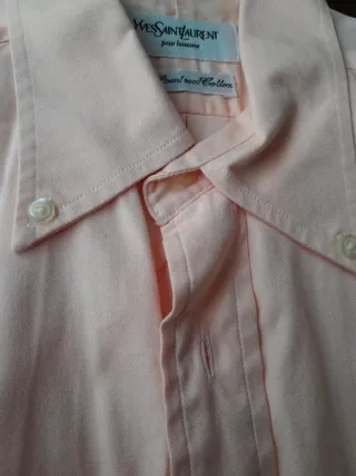 Camisa de vestir de la marca Yves Saint Laurent. - Naranja pálido. - Tejido 100% algodón. - Cuello clásico. -una rosa y una amarilla - Tres en total - Las rosa y amarilla son talla m -Todas manga corta -Todas con bolsillos