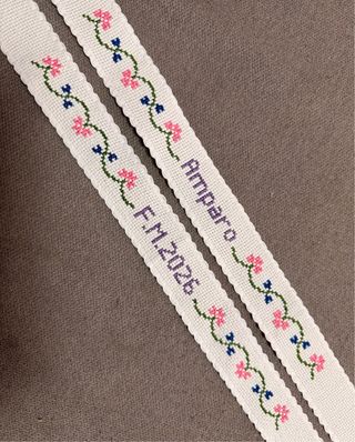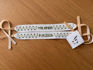 Lligacames fallero con bordado personalizado. - Bordado con el nombre o con iniciales. Para fallera mayor o para falleros. - Incluye cintas de terciopelo para atar.