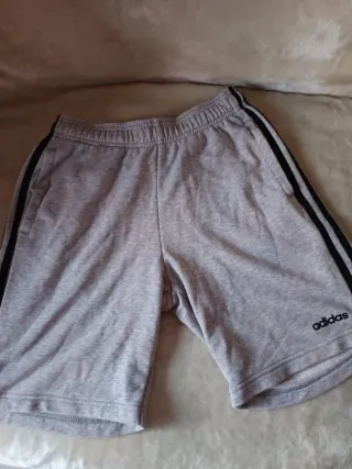 Pantalones cortos deportivos de Adidas en color gris. Perfectos para el día a día o para hacer deporte. - Diseño con tres rayas laterales. - Cintura elástica para mayor comodidad dos pantalones por 6€ - Logo de Adidas en la pierna.