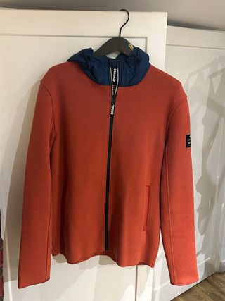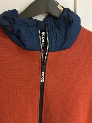 Sudadera Ecoalf con capucha y cremallera. - Color naranja y azul. - Diseño moderno y cómodo. - 100% poliester reciclado