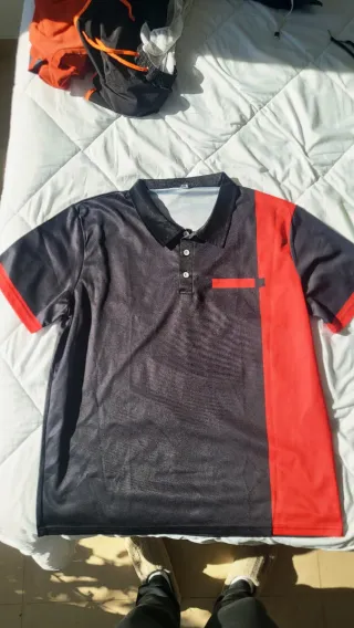 Pack de dos polos con diseño moderno y llamativo. - Manga corta. - Cuello tipo polo con botones. - Bolsillo en el pecho. - Combinación de negro y rojo.