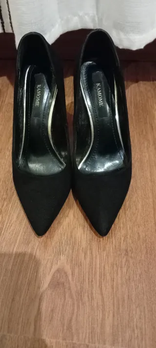 Elegantes zapatos de tacón de la marca KAMOME. - Diseño de punta fina. - Acabado en ante.