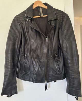 Chaqueta de Piel Negra Mujer