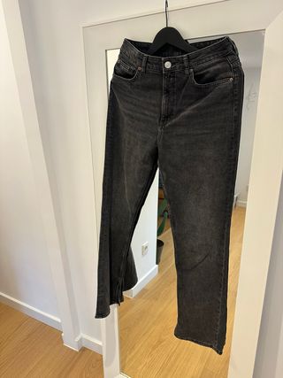 Pantalones vaqueros de H&M en color negro. Tienen un corte moderno y favorecedor. - Tiro alto. - Pierna recta con abertura. - Bolsillos delanteros y traseros.