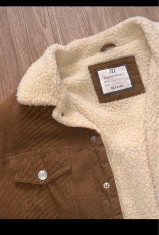 Chaqueta de pana con forro interior de borrego. - Cierre de botones a presión. - Bolsillos en el pecho con botón. - Cuello forrado. Esta como nueva marca 15/16 años pero es una S incluso algo grande