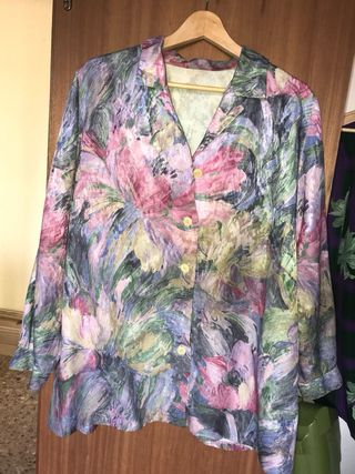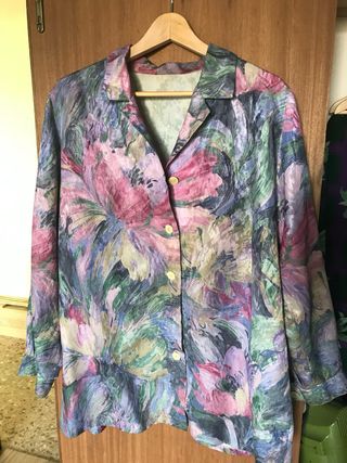 Chaqueta con un estampado floral vibrante y artístico. Su diseño la hace ideal para añadir un toque de color a cualquier atuendo. - Diseño de manga larga. - Cierre de botones. - Cuello camisero.