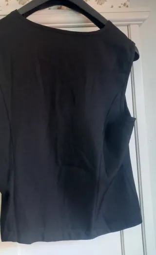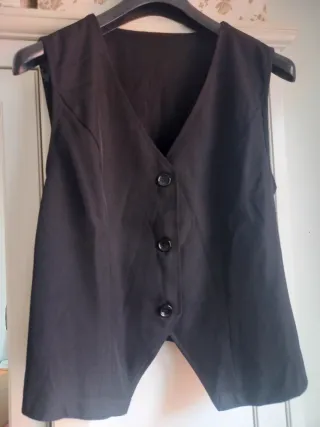 Elegante chaleco negro, perfecto para añadir un toque sofisticado a cualquier atuendo. Es una prenda versátil y cómoda. - Cierre de botones.