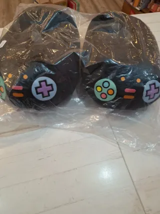 Zapatillas Itotal con diseño inspirado en videojuegos. - Zapatillas Plush Let's PlayStation. - Color negro con detalles multicolor. - Adornos de mandos de consola.
