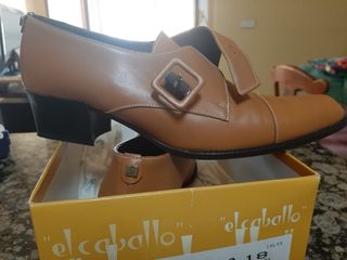 Elegantes zapatos de piel de la marca El Caballo. - Diseño tipo blucher con hebilla. - Color avellana. - Acabado en vaquetilla.