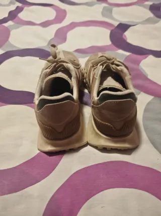 Zapatillas de la marca New Balance en color beige y marrón. - Diseño deportivo. - Cierre con cordones. - Suela de goma.