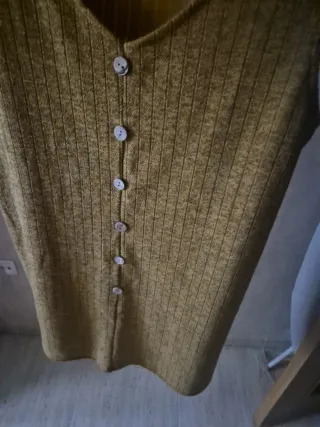 Chaleco de punto con un bonito diseño acanalado y detalles de botones en la parte delantera. Perfecto para añadir una capa extra a tu atuendo. - Diseño acanalado. - Cierre de botones. - Cuello en V.