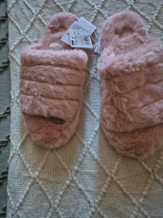 Comodísimas zapatillas de estar por casa con un diseño suave y mullido. - Material exterior de pelo sintético. - Suela antideslizante. - Detalle de corazón en la plantilla.
