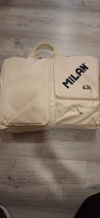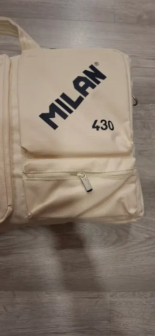 Bolso tipo maletín de la marca Milan. - Color beige. - Compartimentos exteriores. - Cremallera frontal.