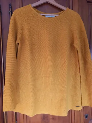 Jersey de punto en color mostaza de la marca VAN-DOS. Muy poco usado, en perfectas condiciones. - Diseño de cuello redondo. - Manga larga, ranglan - Corte holgado, parte de abajo redondeada.