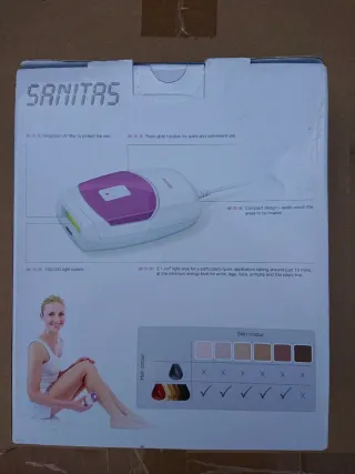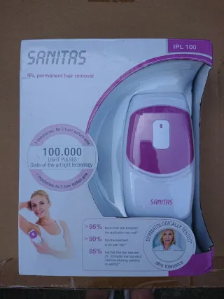 Depiladora de luz pulsada Sanitas IPL 100. - Tecnología de luz de última generación. - 100.000 pulsos de luz. - 1 impulso/seg. para 3.1cm² de superficie. - Probado dermatológicamente.