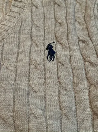 Jersey de punto trenzado de Polo Ralph Lauren en color gris. Presenta un diseño clásico con cuello en V y el icónico logo del jinete bordado en el pecho. - Tejido suave y cálido. - Corte regular.