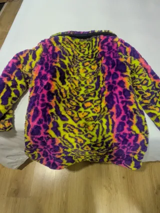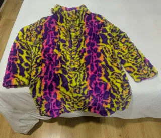 Abrigo con estampado de leopardo en tonos vibrantes. - Diseño llamativo y moderno. - Tacto suave y cálido.
