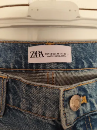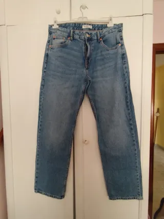 Pantalón vaquero de la marca Zara en color azul. Diseño moderno y cómodo. - Corte recto. - Lavado desgastado. - Bolsillos delanteros y traseros.