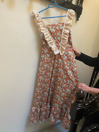 Preciosa bata rociera en talla XS/S. Ideal para cualquier evento. - Diseño floral en tonos rojos y blancos. - Detalle de volantes en el pecho y bajo. - Confeccionada en tejido ligero y fresco.