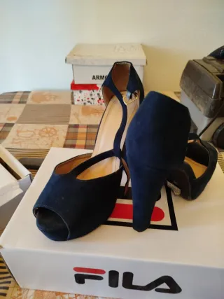Preciosos zapatos de tacón grueso, ideales para cualquier ocasión. Son de color negro y tienen un diseño elegante y sofisticado. - Tacón grueso para mayor comodidad. - Diseño de tiras cruzadas. - Material de ante sintético. #sandalias #tacones ..