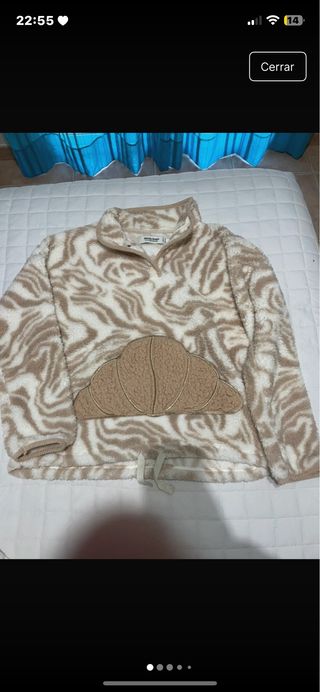 Pijama de tejido suave con estampado de cebra y detalle de bolsillo frontal con forma de croissant. - Manga larga. - Cuello redondo con media cremallera. - Cordón ajustable en la cintura.