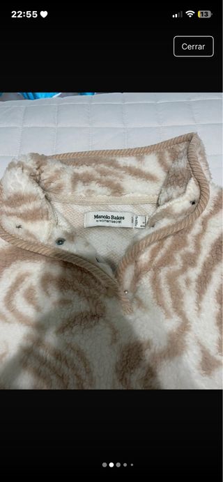 Chaquetón estilo hippie con un diseño único y llamativo. - Detalle de Om en los laterales. - Adornos florales y mariposas. - Mangas con volantes. - Cremallera frontal.
