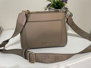 Bolso mujer de color beige con un diseño elegante y moderno. Perfecto para llevar tus esenciales. Correa ancha para mayor comodidad - Correa ajustable con logo repetido. - Bolsillo exterior e interior. - Cierre de cremallera. - 3 compartimentos mas dos bolsillos