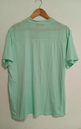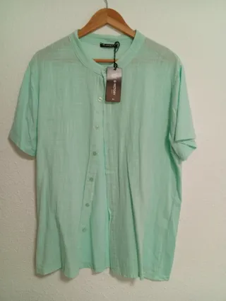 Camisa de manga corta con cuello mao y botones frontales. - Tejido ligero y transpirable. - Diseño liso con textura sutil.
