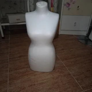 Maniquí de torso blanco de corcho, ideal para exhibir prendas. - Diseño curvo que realza la forma de la ropa. - Base estable para colocar sobre superficies. - Material ligero y fácil de limpiar.