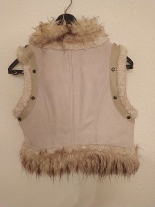 Chaleco de imitación piel y pelo sintético, ideal para añadir un toque de estilo. - Diseño con cuello de pelo. - Detalles de tachuelas. - Dos bolsillos frontales.