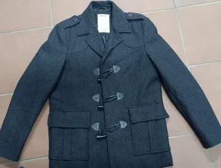 Abrigo de paño con cierre de trenca. - Diseño clásico. - Bolsillos frontales. - Cuello con solapas.