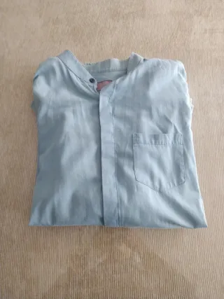 Camisa vaquera de manga larga con cuello mao y un bolsillo en el pecho. - Cierre de botones. - Tejido ligero y transpirable.
