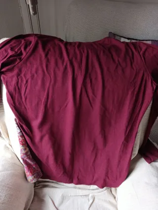 Chaleco de tacto suave en color burdeos, ideal para añadir un toque especial a tus looks. Se encuentra en perfecto estado y ha sido muy poco usado. - Diseño sin mangas. - Cierre con botones. - Forro interior.