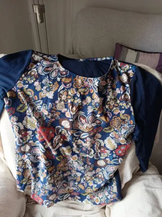 Camiseta con un bonito estampado floral en tonos azules y multicolor. Es cómoda y versátil. - Diseño de manga larga. - Tejido suave al tacto.