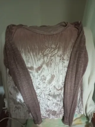 Camiseta terciopelo beige/rosa talla única