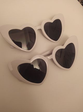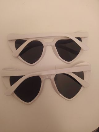 Pack de dos gafas con forma de corazón, ideales para fiestas o despedidas. - Montura blanca. - Lentes negras.