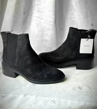 Botines estilo Chelsea de Bershka. Material exterior de ante. Diseño con elásticos laterales. Tacón bajo y cómodo.