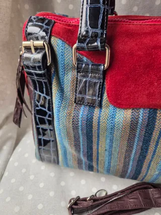 Bolso combinado multicolor y rojo