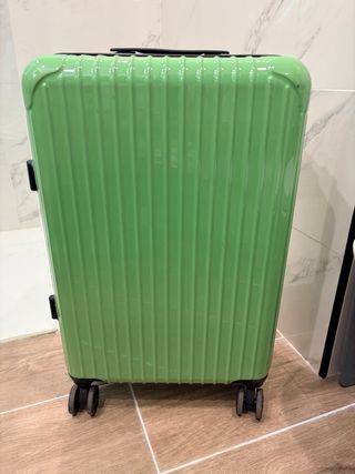 Maleta mediana comprada en Japón y usada una sola vez, esta prácticamente nueva, tiene algún golpe del día en que se uso y poco mas. - Medidas: 40x58x26 cm. - Diseño de líneas verticales. - Ruedas y asa multiposición.