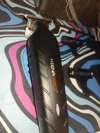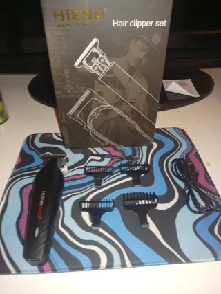Recortadora Hiena Pro en color negro. Incluye varios peines guía para diferentes longitudes de corte. - Peines guía de 1mm, 2mm, 3mm y 4mm. - Cable de carga incluido.