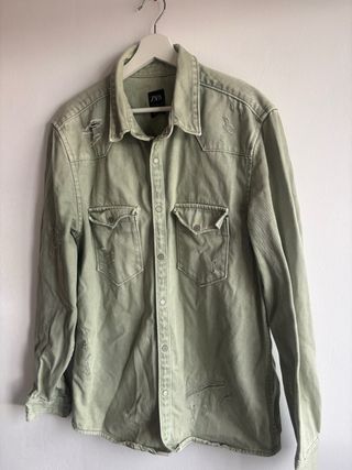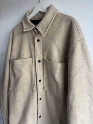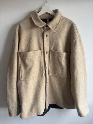 Abrigo de la marca Bershka en talla M. Un básico versátil para tu armario. - Diseño de corte recto. - Dos bolsillos frontales con solapa. - Cierre de botones a presión. - Cuello camisero.