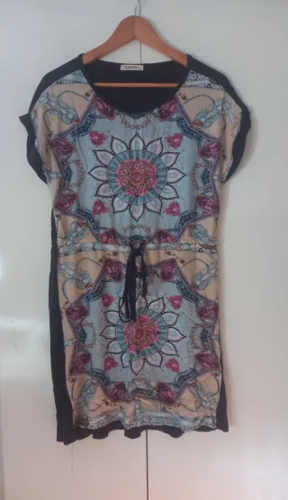 💐✨️ Precioso y cómodo vestido con estampado hippie, con cordón ajustable en cintura, elástico -Sin usar (Nuevo) -Talla: M (Corresponde a talla M-L) (Primera imagen de referencia)