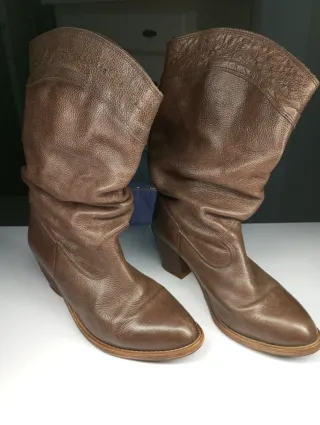 Botas de estilo cowboy de la marca Mustang. - Material de piel. - Diseño arrugado en la caña. - Tacón cuadrado.