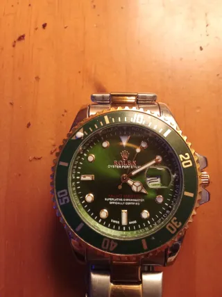 Elegante reloj con detalles en dorado y esfera verde. - Bisel giratorio. - Correa de eslabones combinada.