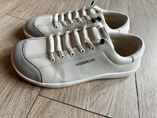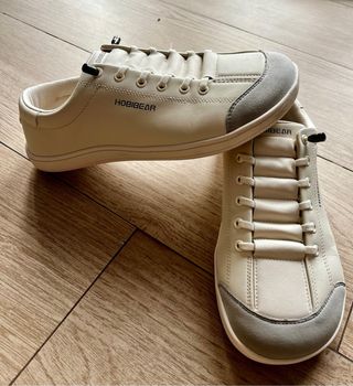 Zapatillas casuales de la marca Hobibear en tonos blanco y gris. - Diseño moderno y cómodo. - Cierre con cordones. - Detalle de costuras.
