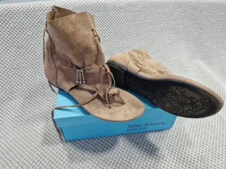 Botas sandalias de ante en color marrón de la marca Niko Amore. Un calzado con un diseño único. - Material exterior de ante. - Cierre con cordones. - Detalle de abalorios plateados.Botas sandalias. Mod BOHO de verano. Talla 37. Muy poco uso.