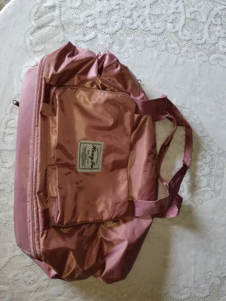 Bolso de mano de tamaño pequeño, con un acabado brillante y elegante. - Material: nailon. - Color: rosa. - Correa ajustable.